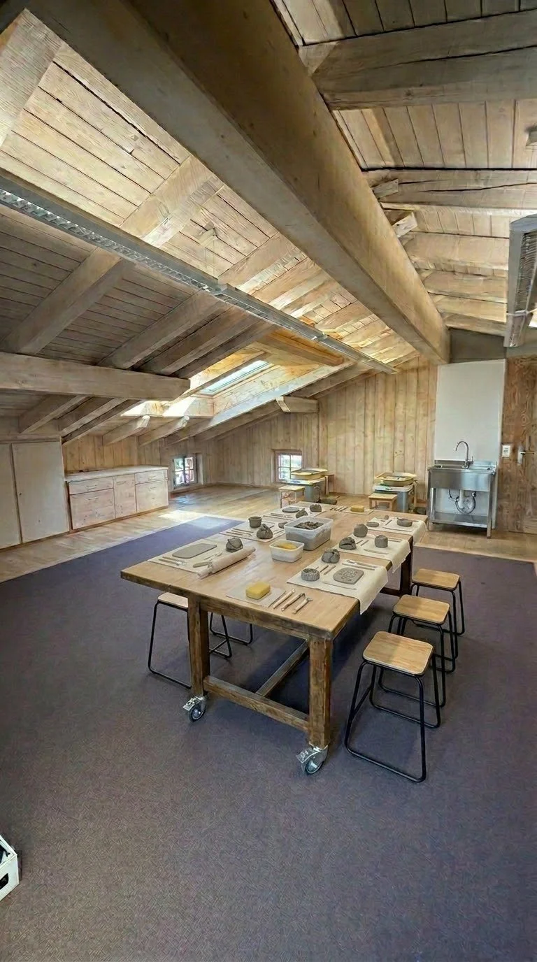 The Gstaad Arts Club studio is a quiet shared workspace dedicated to painting, drawing, and ceramics.